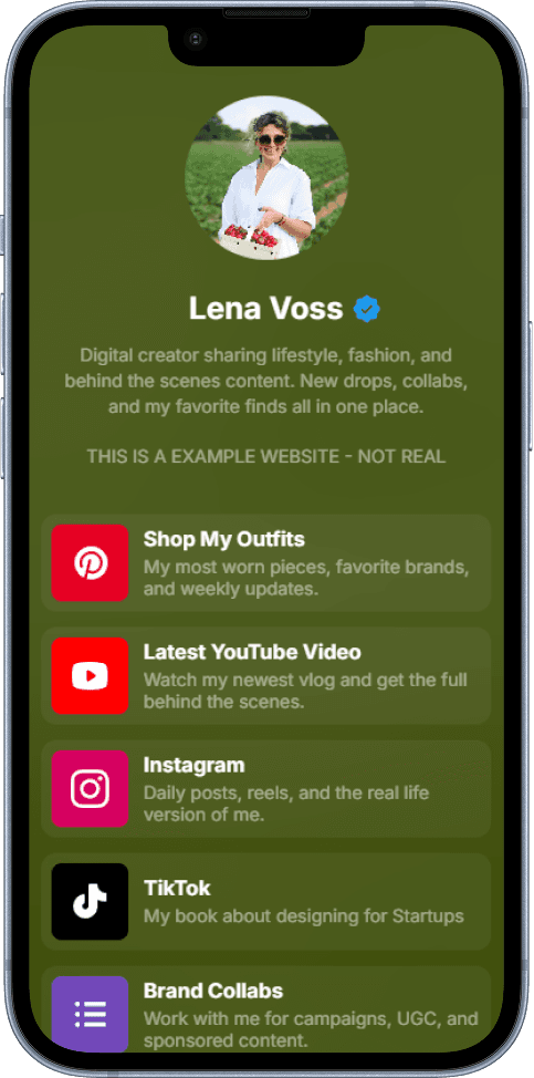 Concept link page made for creators who want a clean social ready hub.